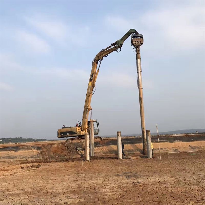Il braccio motore del mazzo dell'escavatore è personalizzato appositamente per guidare e tirare il mazzo del foglio, che è diverso dal braccio del boom standard dell'escavatore.che è dotato di un braccio corto. Poi un braccio di piegatura del martello può essere collegato al braccio piccolo, in modo da controllare meglio le operazioni di sollevamento e di pressatura del mucchio